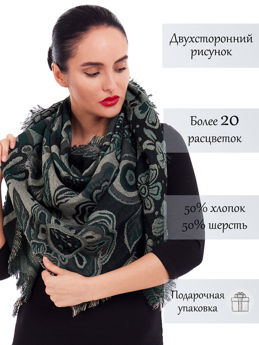 Оригинальная косынка из качественного хлопка и шерсти станет для вас уникальным аксессуаром, сочетающим в себе сразу несколько свойств, благодаря удачной комбинации натуральных тканей. Тонкая шерсть в составе косынки согреет вас холодным вечером, а нежный и мягкий хлопок позволит использовать косынку как прекрасную накидку. Оригинальная гамма расцветок и стильное сочетание цветов выгодно выделит любой ваш образ, а бахрома добавит женственности и романтичности.