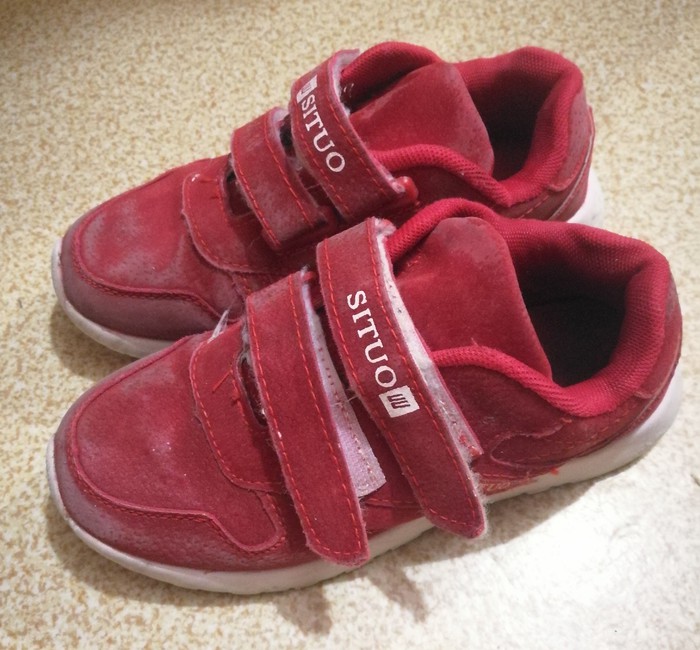 Кроссовки все целые, только стёрто верхнее напыление на ткани. Отличный вариант гулять во дворе и гонять в футбол.