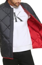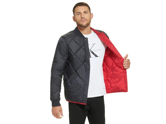 Новая стеганная куртка известного американского бренда Calvin Klein, Reversible Quilted Jacket. Добавьте универсальный предмет в свою коллекцию с помощью этой двусторонней стеганой куртки. Носите эту куртку с весны до осени или надевайте его прохладными летними ночами. Этот бомбер со стеганой отделкой можно носить с обеих сторон. Ребристый бейсбольный воротник, кнопки спереди, двойные карманы, ребристые манжеты, стежка по всей поверхности. Вшивка с логотипом у кармана на левой стороне. Цвет: DEEP RED. Состав: верх 100% полиэстер; наполнение 100% полиэстер Sorona; трикотаж 98% полиэстер, 2% спандекс. Размер: M. Замеры: длина по спинке 70 см, длина рукава по внешнему шву 68 см, длина рукава по внутреннему шву 52 см, ширина между плечевыми швами 47 см, ширина между подмышек 59 см, ширина подола 51 см.