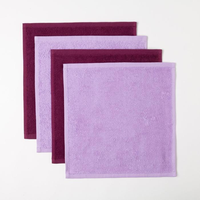 Набор из 4х махровых полотенец 30*30 Бордовые/Сиреневые