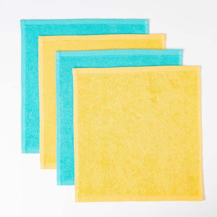 Набор из 4х махровых полотенец 30*30 Голубые/Жёлтые
