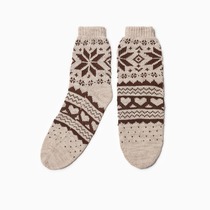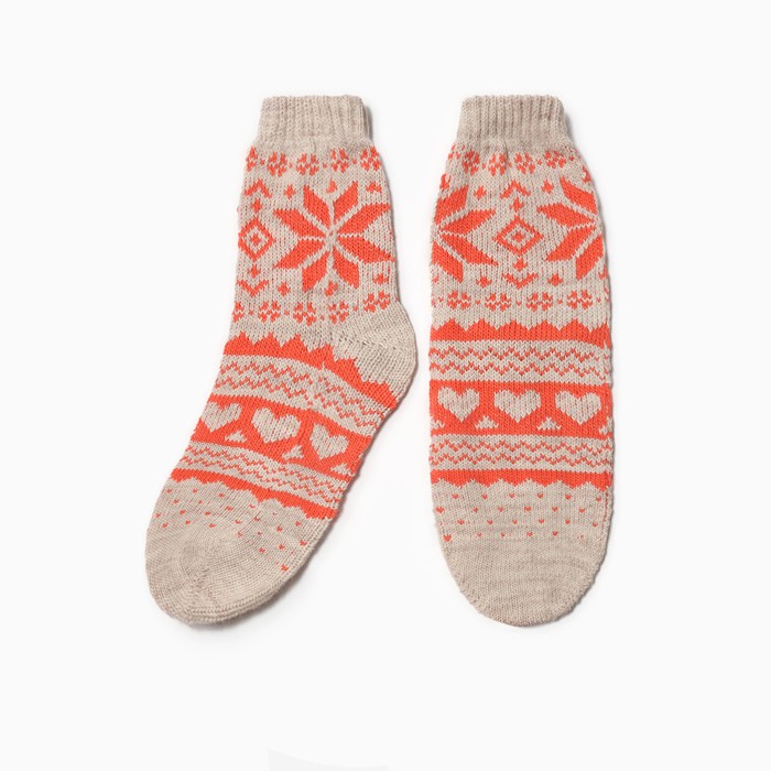 — Носки шерстяные женские Снежинки и сердечки бежевый р25-27