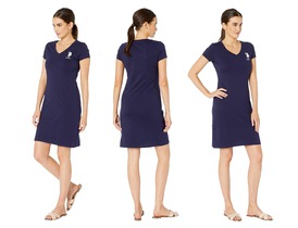 Новое оригинальное платье известного американского бренда U.S. POLO ASSN, USPA SNEAKER DRESS. Наслаждайтесь теплой погодой в платье-футболке с короткими рукавами. V-образный вырез и большой вышитый логотип в левом верхнем углу спереди. Машинная стирка. Цвет: EVENING BLUE. Состав: 100% хлопок. Размер: L. Замеры: длина по спинке 93 см, длина рукава по внешнему шву 16 см, длина рукава по внутреннему шву 3 см, ширина между плечевыми швами 38 см, ширина между подмышек 50 см, ширина подола 60 см.