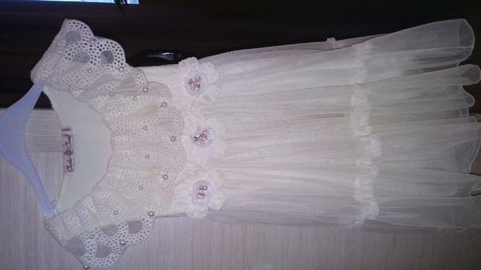 Платье праздничное на девочку. Цвет кремовый. Очень нежное и красивое. Состояние идеальное. Б/у 2 раза на прошлый новый год и фотосессию.