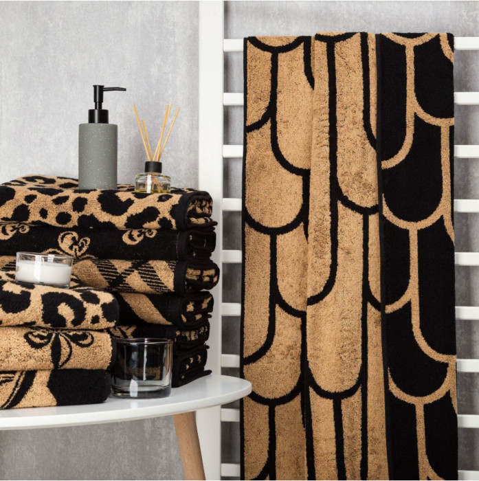 — Полотенце махровое люкс Чешуя ч/беж 70*130см