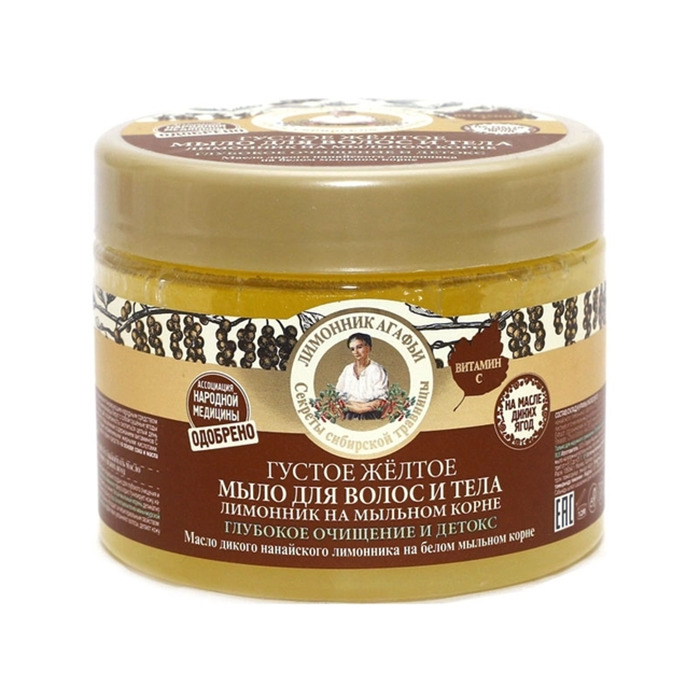 Густое жёлтое мыло «лимонник на мыльном корне» специально создано для глубокого очищения и оздоровления волос и тела.