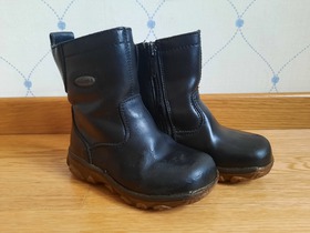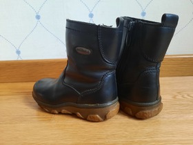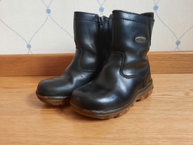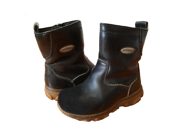 Б/У, зимние сапоги российского производителя Антилопа, артикул 23141-1088. Зимние сапоги для мальчика из натуральной кожи, внутри натуральный мех, теплые, уютные. Без каблука и теплой меховой подкладкой и стелькой. Цвет: черный. Состав: натуральная кожа 100%, подкладка натуральный мех 100%, подошва резина 100%. Размер: 24 наш, длина по стельке 15,5 см, длина стопы 15 см. Без коробки. Состояние: б/у, удовлетворительное, есть потертости на носке, отслаивание краски с кожи.