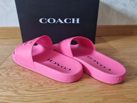 Новые оригинальные сланцы известного американского бренда COACH Ulla Rubber Slide. Эти непринужденные спортивные шлепанцы изготовлены из мягкой водонепроницаемой резины с тиснением логотипа. Контурная стелька обеспечивают комфорт в течение всего дня. А резиновая подошва обеспечивает долговечность скольжения. Цвет: Confetti Pink Rubber. Состав: 100% резина. Размер: 9 US, наш 39,5, длина по стельке 27 см, длина стопы 25,5. В коробке.