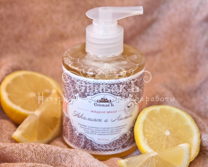 Жидкое мыло Эвкалипт и Лимон обладает приятным свежим лимонно-эвкалиптовым ароматом с бодрящей ноткой каяпута. Оно подойдет любому типу кожи, но прежде всего – комбинированной и склонной к жирности. Эфирное масло эвкалипта помогает нормализовать работу сальных желез, обладает антисептическим и противовоспалительным действием, борется с раздражениями, высыпаниями, инфекциями, эфирное масло каяпута – повышает упругость кожи, стимулирует кровообращение и регенерацию клеток эпидермиса. Эфирное масло лимона дает легкий отбеливающий эффект, смягчает и тонизирует кожу, ускоряет заживление и способствует общему улучшению состояния кожи.