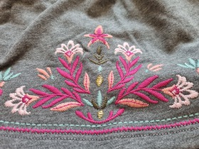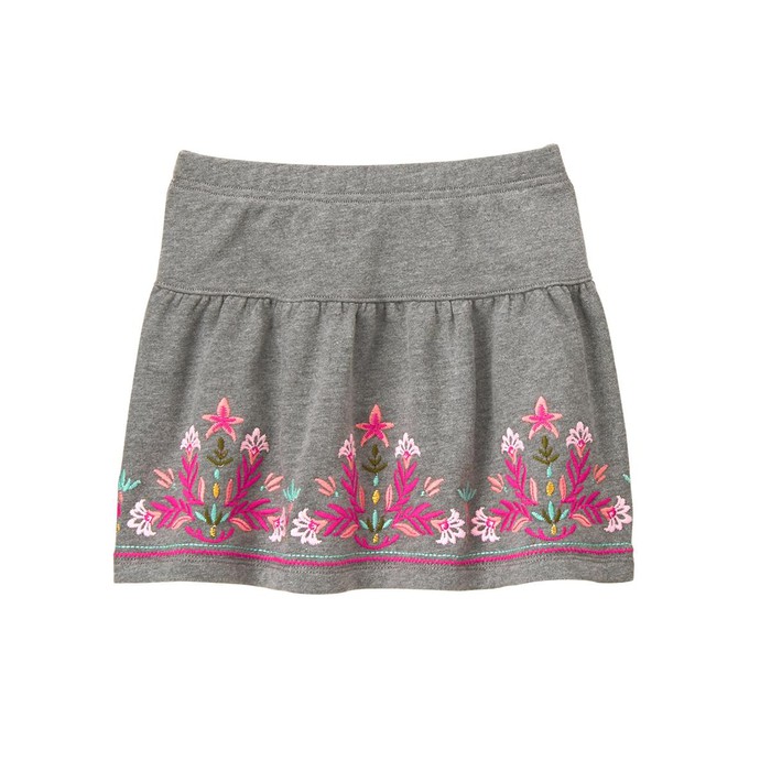Новая юбка известного, американского бренда Gymboree, Floral Skirt. Красивая трикотажная юбка с цветочной вышивкой, пояс на резиночке, внутри юбки петельное плетение, напоминающее начес или махру. Приблизительно длина до колена. Цвет: Heather Grey. Состав: 60% хлопок/40% полиэстер French terry. Размер: S(5-6) для девочки 5-7 лет, ростом 106.5-122 см.