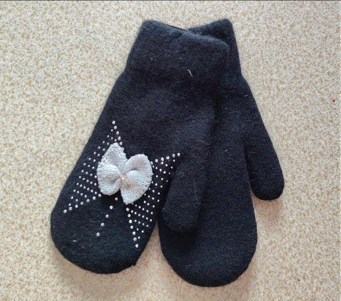 — Варежки подростково-взрослые 14+ со стразами и бантом
