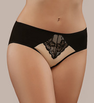 Трусики Миди со средней посадкой. Комбинированная модель из черного, контрастного бежевого полотна и элегантного черного кружева.
